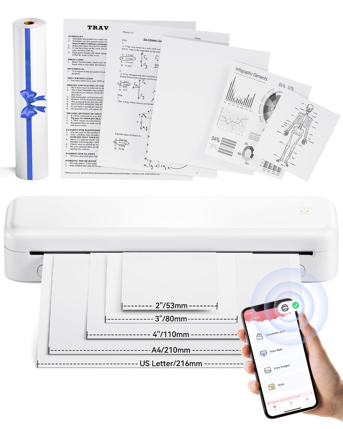 PhoFuta (Mise à Jour Imprimante Portable, Imprimante Thermique a4, Supporte Plusieurs Formats Papier Thermique, Compatible avec iOS, Android, PC, Imprimante sans Encre pour Les Voyages, Les Bureaux
