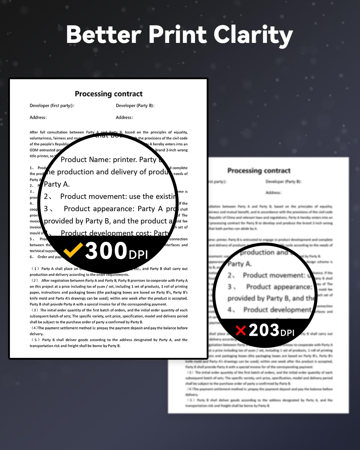 - Imprimante thermique a4 PhoFuta M834 [Mise à jour 1] Netteté d'impression 300 dpi : PhoFuta M834 utilise une tête d'imprimante thermique portable qui offre des impressions d'une netteté de 300 dpi. Note : de nombreuses imprimantes thermiques sur le marché ont une résolution de 203 dpi, ce qui produit des impressions floues.